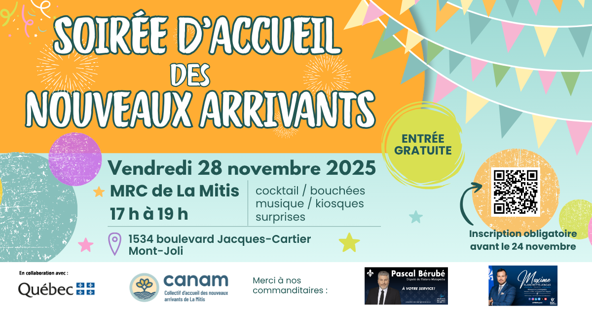 Le CANAM vous prépare une soirée toute spéciale pour vous souhaiter la bienvenue! Au programme : des rencontres chaleureuses, des découvertes sur votre nouveau milieu de vie, des coups de cœur à partager, et surtout, l’occasion de créer vos premiers liens dans la communauté.
